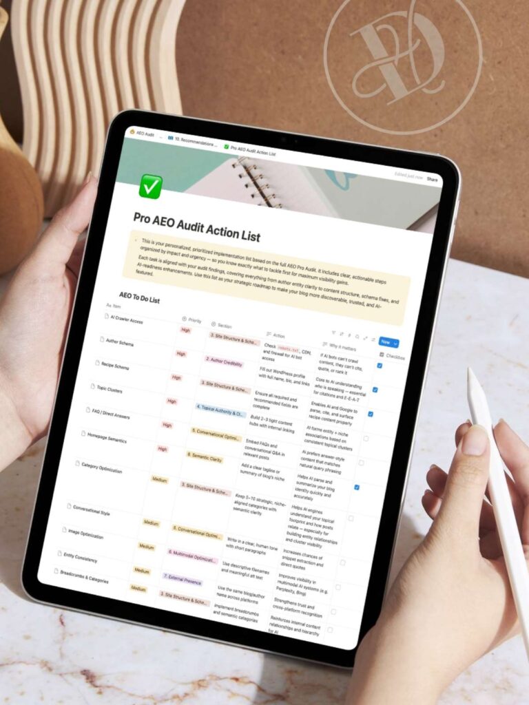I thought I knew my blog inside out, but Hanelore’s audit completely shifted my perspective. It gave me new insights into how AI interprets my content, things I hadn’t even realized were gaps or issues. What really stood out was how clear and well-structured the audit was. Every section was easy to follow, and I loved how the Action Tracker provided a practical, prioritized to-do list. I walked away feeling confident and future-proof, with a clear plan to make my blog AI-ready and more visible. This isn’t your typical SEO audit; it’s different, highly valuable in today’s environment, and truly actionable.